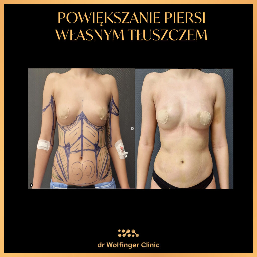 Powiększanie piersi własnym tłuszczem, znane również jako lipofilling piersi, polega na pobraniu tłuszczu z innych części ciała pacjenta, takich jak brzuch, uda czy pośladki, za pomocą liposukcji. Następnie, po odpowiednim przygotowaniu, tłuszcz ten jest wstrzykiwany do piersi, aby zwiększyć ich objętość i poprawić kształt.